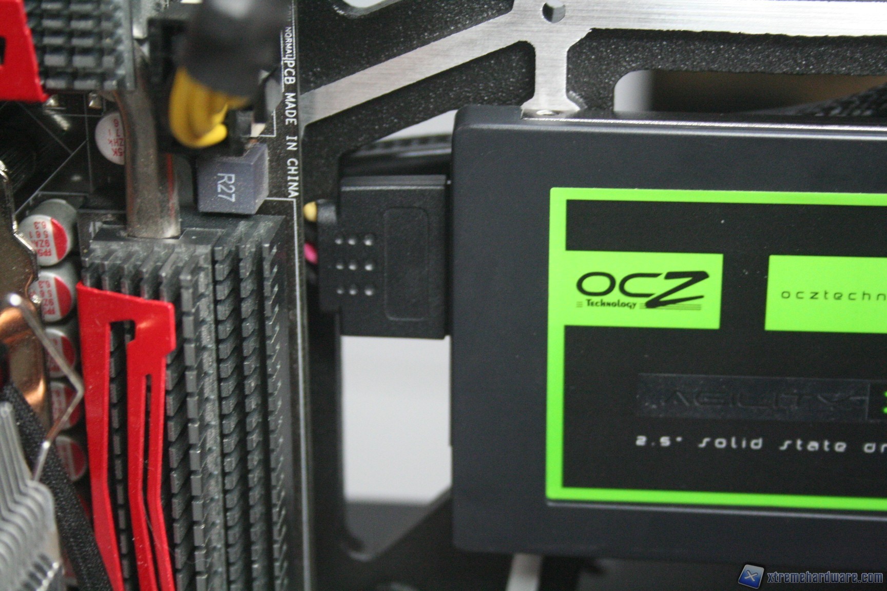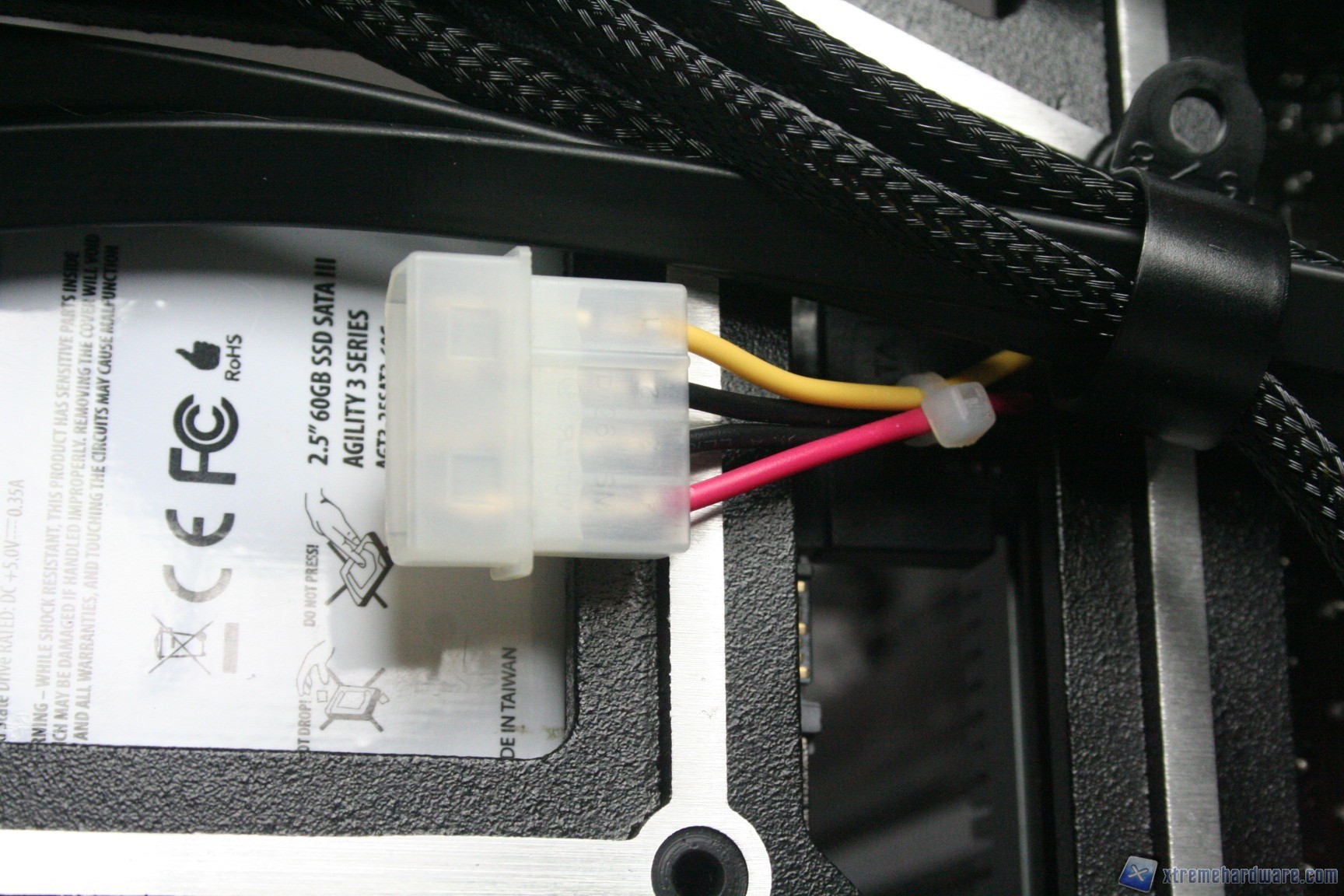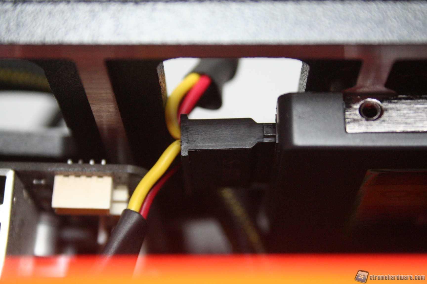 Ora analizzeremo velocemente il montaggio di un sistema Intel, ed il conseguente cablaggio posteriore ed anteriore. Anche per gli utenti poco esperti la procedura è molto facile: per prima cosa dovrete montare l’alimentatore al lato sinistro del cabinet, facendo attenzione a passare il connettore di alimentazione supplementare della scheda madre, da 4/8 pin direttamente dietro il plate della mobo, se il connettore non è molto lungo o se non siete in possesso di prolunghe di alimentazione. Date le dimensioni ridotte, difficilmente saranno necessarie delle prolunghe per il connettore della scheda madre 24 pin, anche se forse per quello da 4+4pin EPS 12V sarebbe opportuno utilizzane una (ne consigliamo sempre l’adozione). Fatto questo consigliamo l’installazione dei dischi rigidi ed anche già il cablaggio dei connettori di alimentazione e interconnessione, facendo attenzione a posizionarli in serie nei cage predisposti a scorrimento. Abbiamo avuto un problema con il posizionamento degli SSD in quanto c’è una bassissima tolleranza laterale tra lo slot di inserimento del connettore SATA dati ed alimentazione, quindi è consigliato l’utilizzo di cavi piatti: