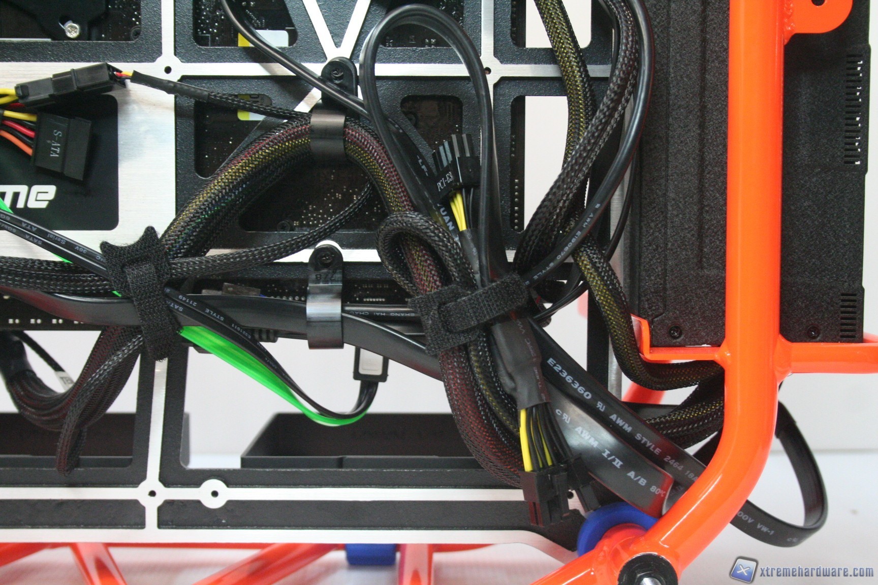 Il cablaggio posteriore è ottimo, come quello anteriore e lo spessore posteriore, che si attesta a 68mm. Il cablaggio posteriore richiederà qualche accortezza e consigliamo di fare molta attenzione durante l’installazione dell’SSD, per via delle ristrette tolleranze in prossimità di queste unità. Abbiamo utilizzato connettori SATA, alimentazione e dati, piatti, quindi vi invitiamo a fare lo stesso. Dato che abbiamo utilizzato una scheda madre E-ATX è stato comunque possibile far passare i cavi nelle apposite fessure. C’è stato anche un problema relativo ad  una vite toolless della PSU, ma è possibile che sia stata colpa del sottoscritto.